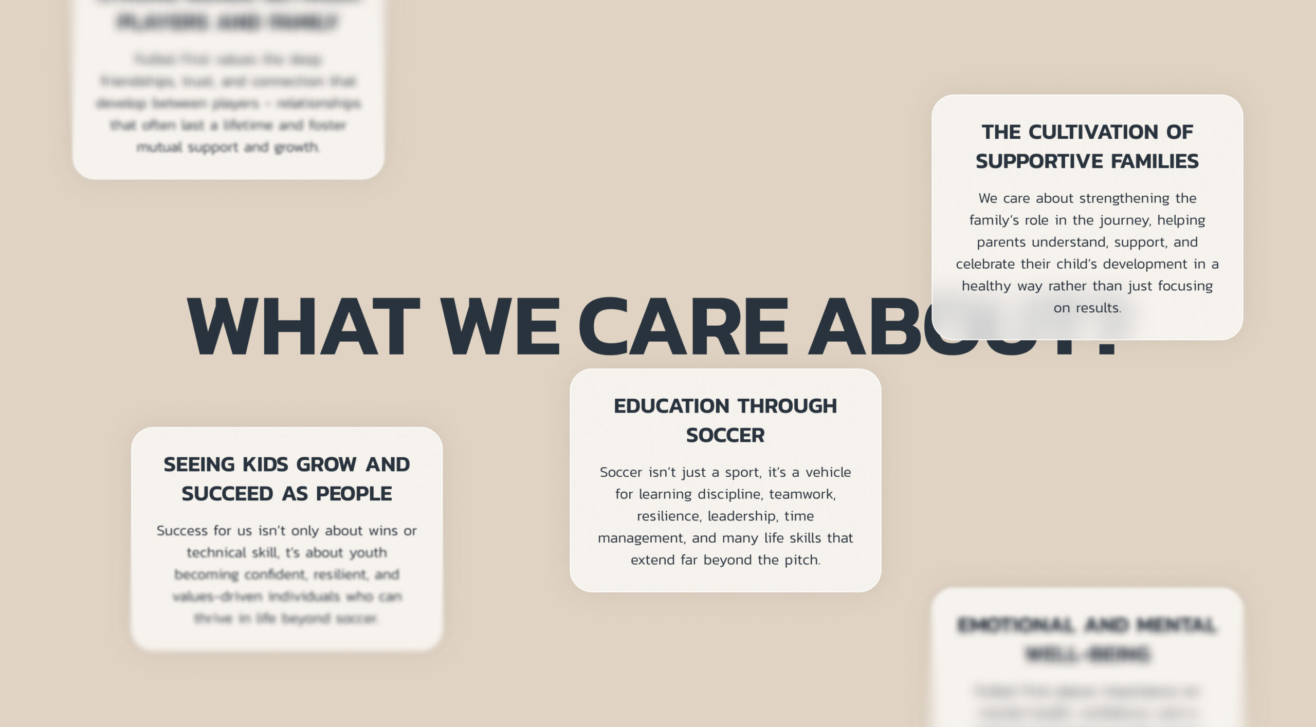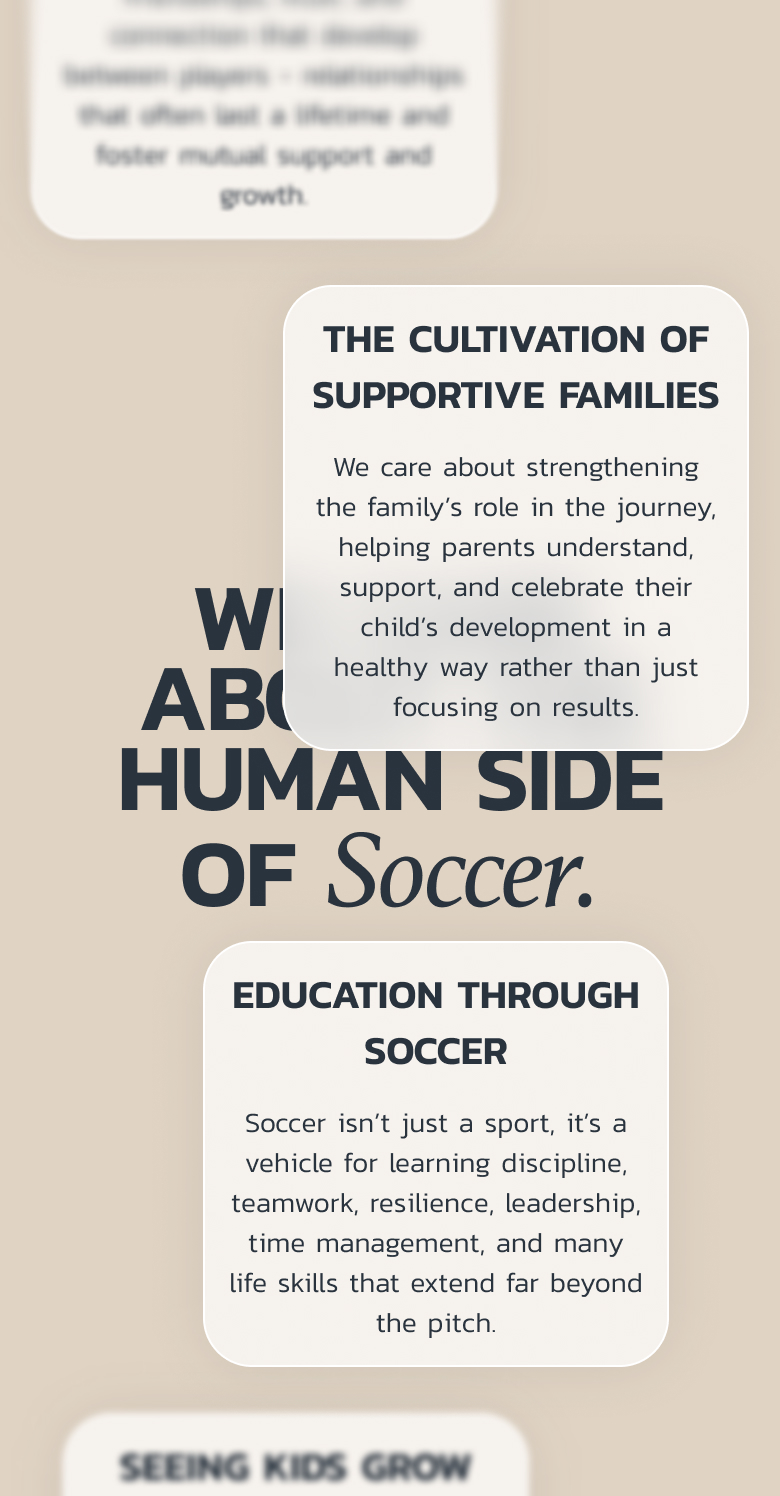To support young soccer players and their families through our community by providing guidance, education, and a values-driven focus on well-being and long-term development.