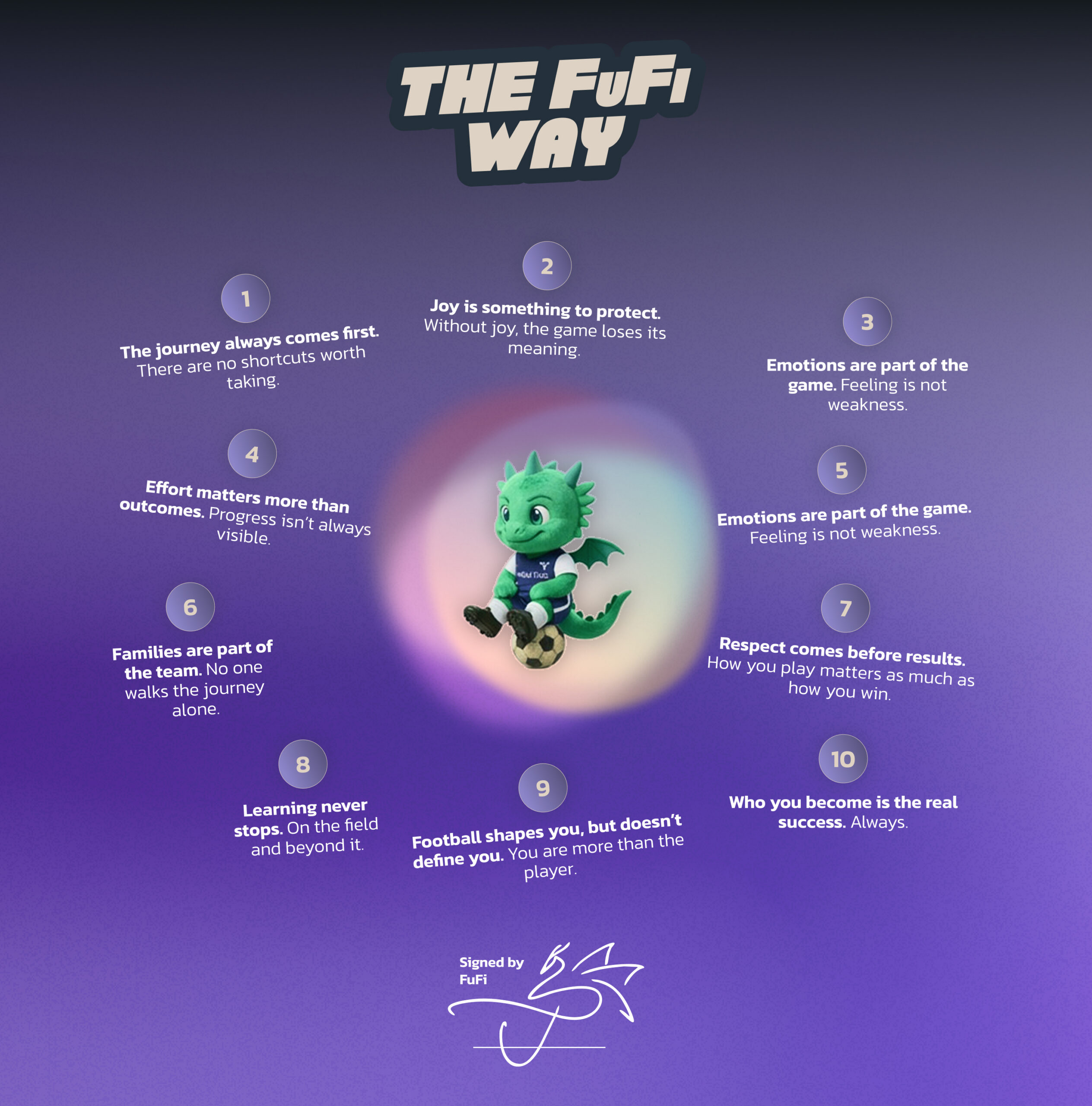 FuFi represents the spirit of the journey: a constant presence in the world of soccer, reminding players and families of what truly matters. In a game often driven by results and rankings, FuFi brings the focus back to the essence of the experience, the learnings, and the human side of soccer.
